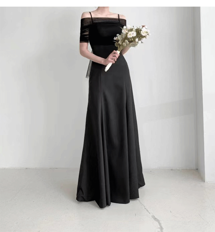 셀프웨딩 브라이덜샤워 롱원피스 스몰웨딩 촬영룩 뷔스티에 새틴 스트랩 리본 프리미엄 롱원피스 드레스 124111804