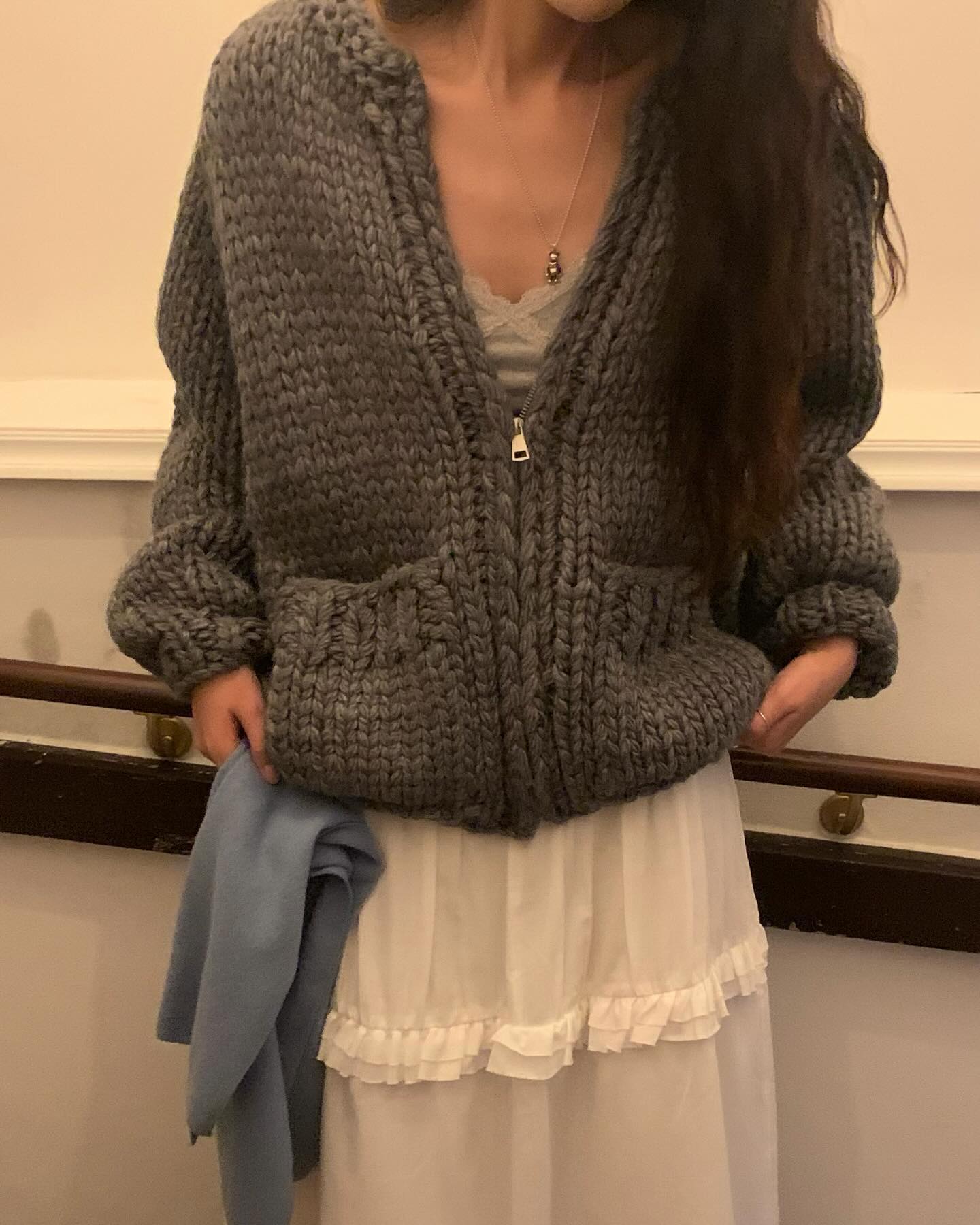 [❄️겨울니트] 피버 핸드메이드 집업 겨울 라운드 니트 2color