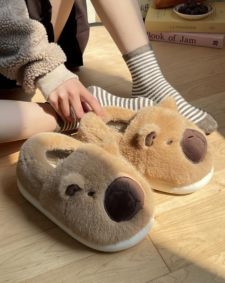 [당일출고] 카피바라 털 실내화 슬리퍼 학생 사무실 동물 캐릭터 귀여운 쿠션 방한 겨울 실내화 학생실내화 거실실내화 거실화