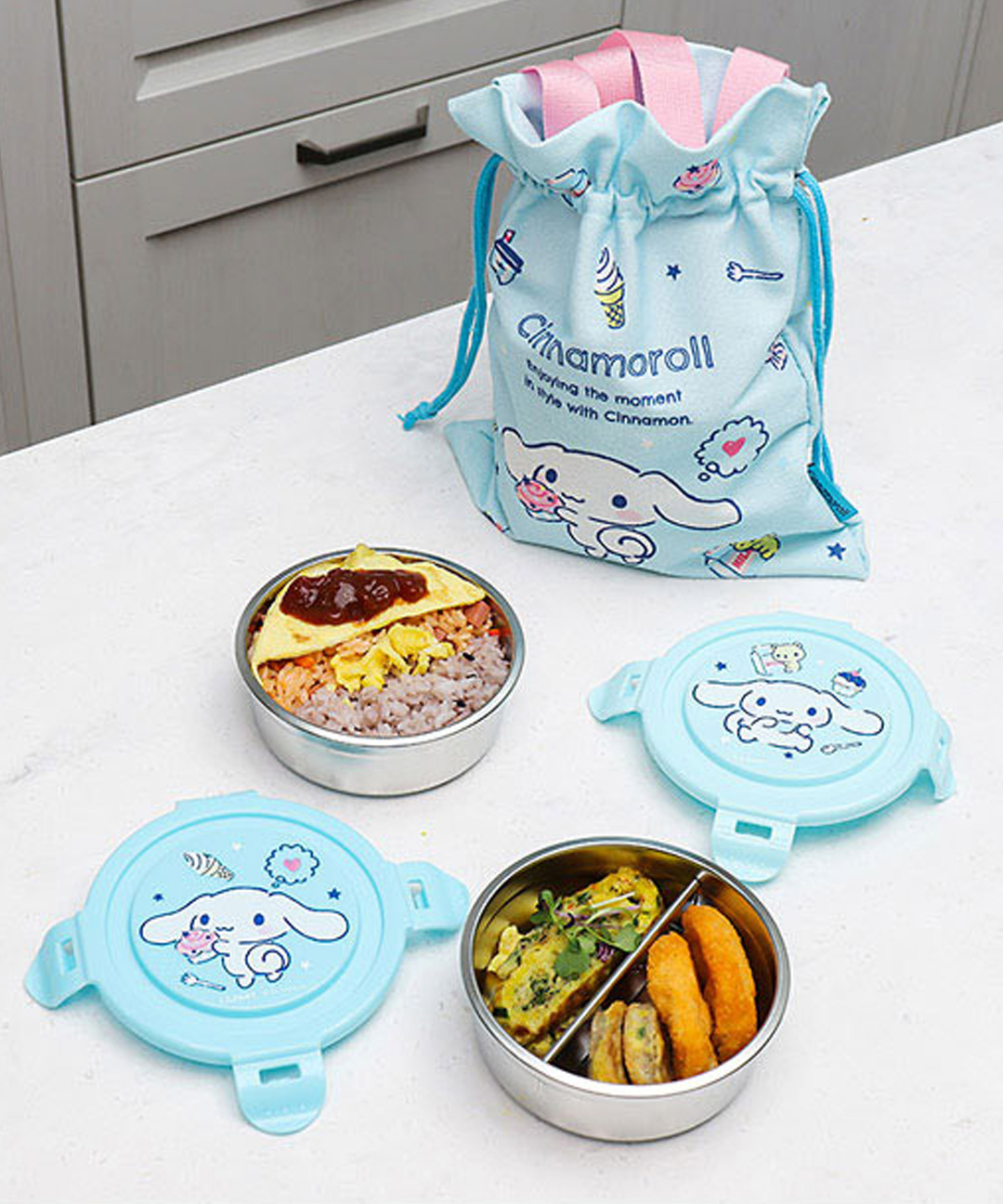 산리오 시나모롤 원형 스텐 2단 도시락 조리개세트/직장인 다이어트 학생 도시락통 가방세트