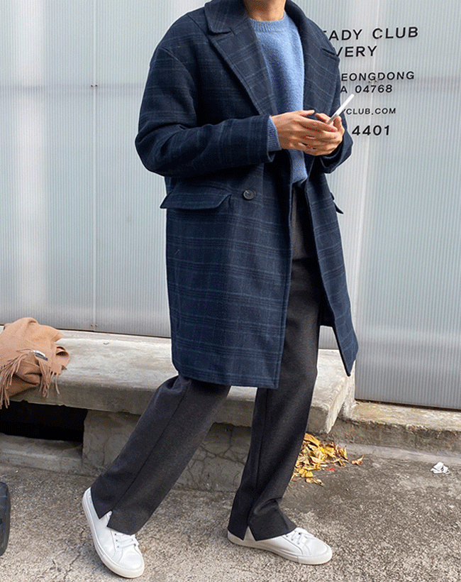 [남자친구선물]남자코트 남자체크코트 남자겨울코트 남자옷 커플코트 남친룩 남자연말룩 연말코디 크리스마스 데이트 오버코트 모직코트