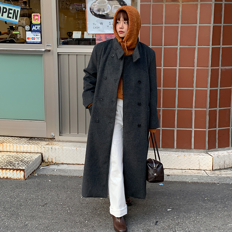 베어링 더블 하이넥 롱 코트 (2color) (코트 롱코트 겨울하객룩 연말룩 하객 아우터 출근룩 오피스룩 겨울아우터 하이넥코트)