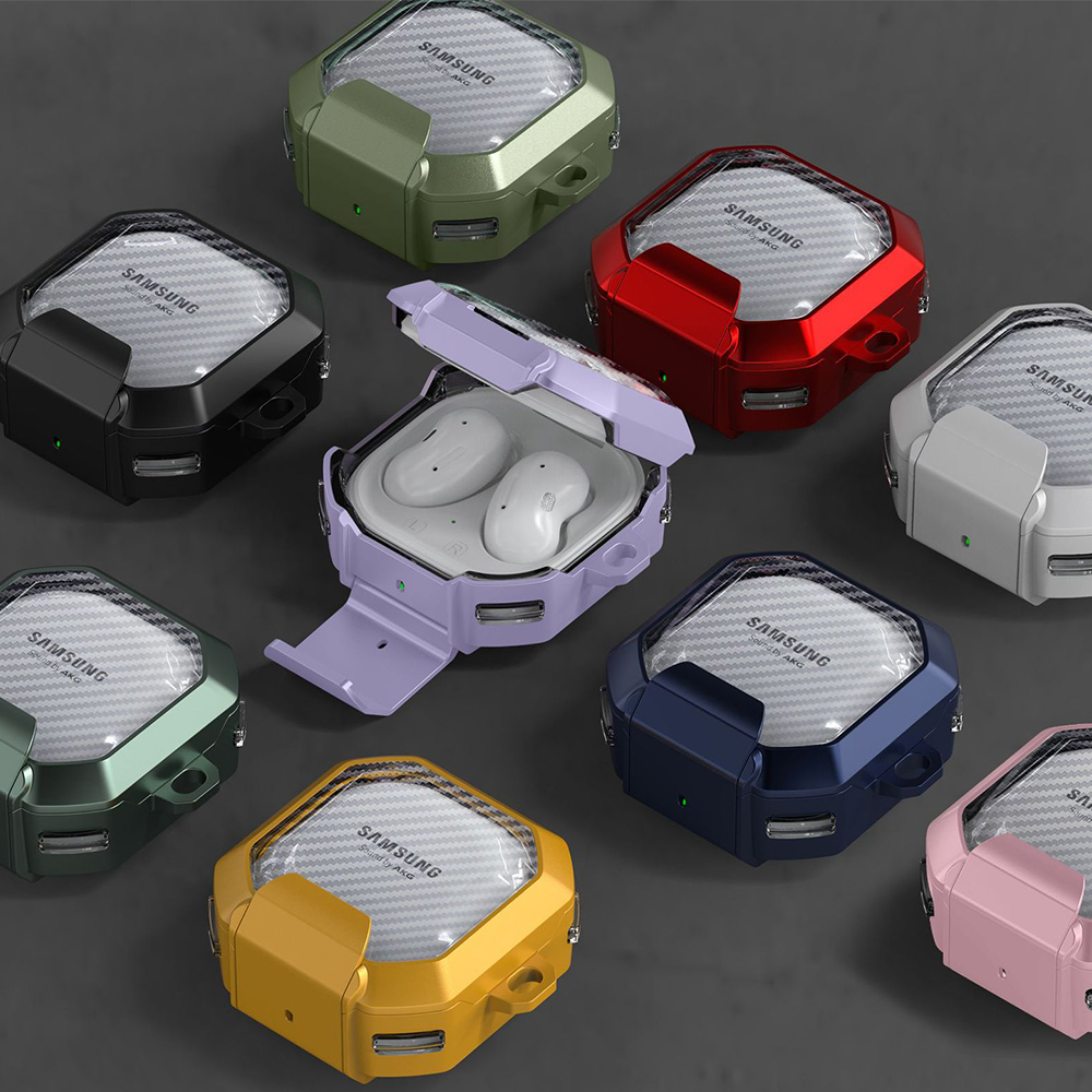 모든지 갤럭시 버즈 FE 2 프로 라이브 케이스 호환 양면 투명 카본 거치 버클락 케이스