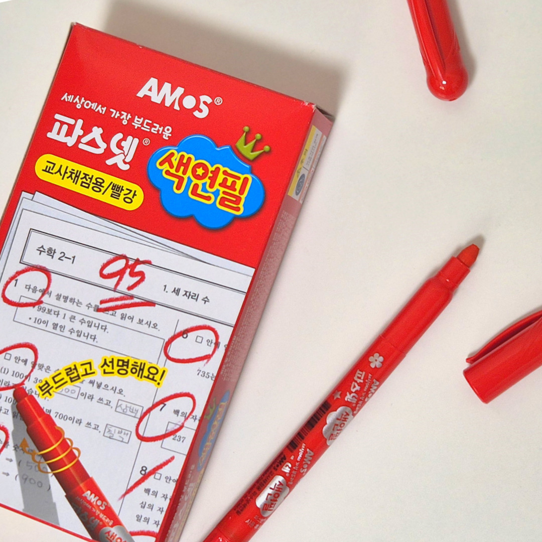 부드러운 파스넷 채점용 빨간 색연필 채점펜 채점 빨간색 빨강 빨강색 교사용 학생용 문구 시험지 문제집