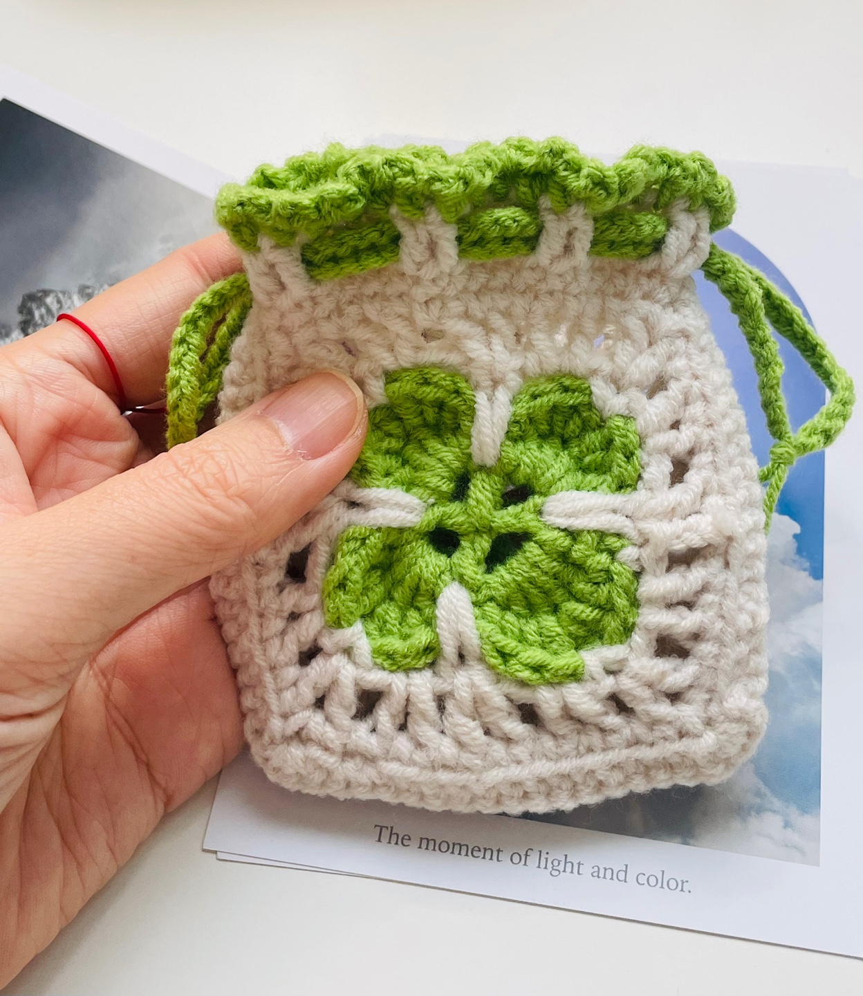 네잎클로버 모티브 에어팟 버즈 케이스 뜨개 파우치