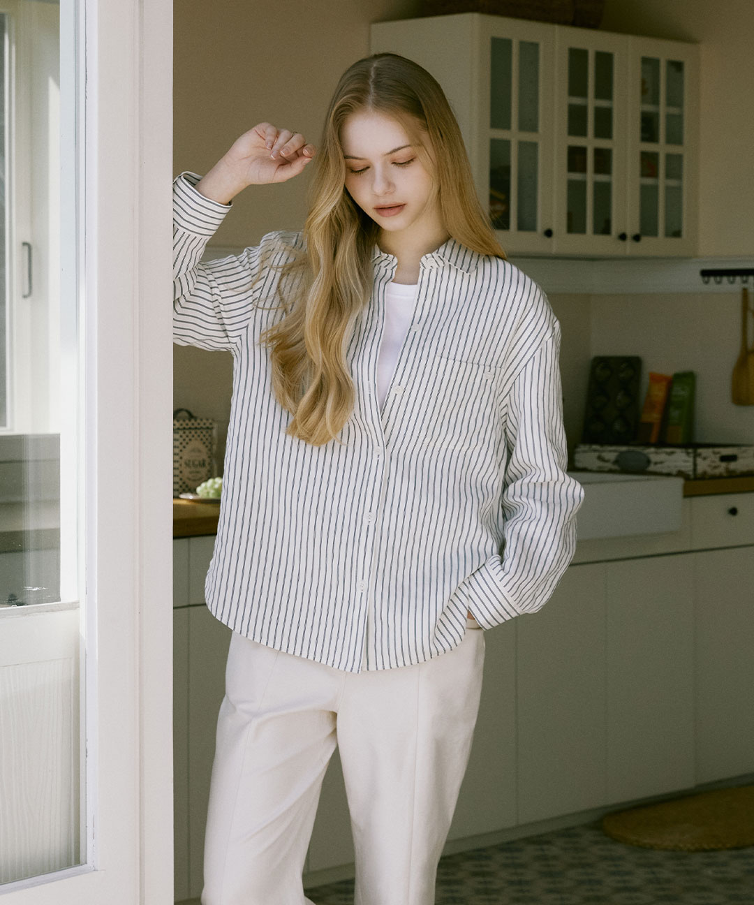 [링클프리] 찰랑셔츠 스트라이프 오버핏_CVYWF2303N