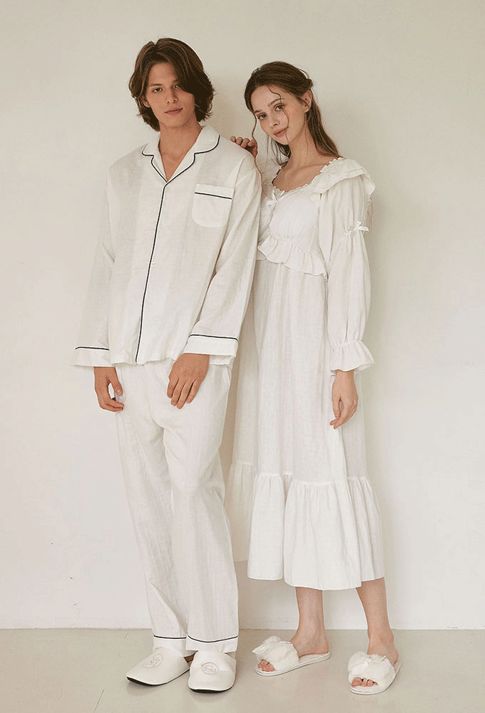 드리밍유 클리앙 면혼방 캡내장 긴팔원피스 커플잠옷