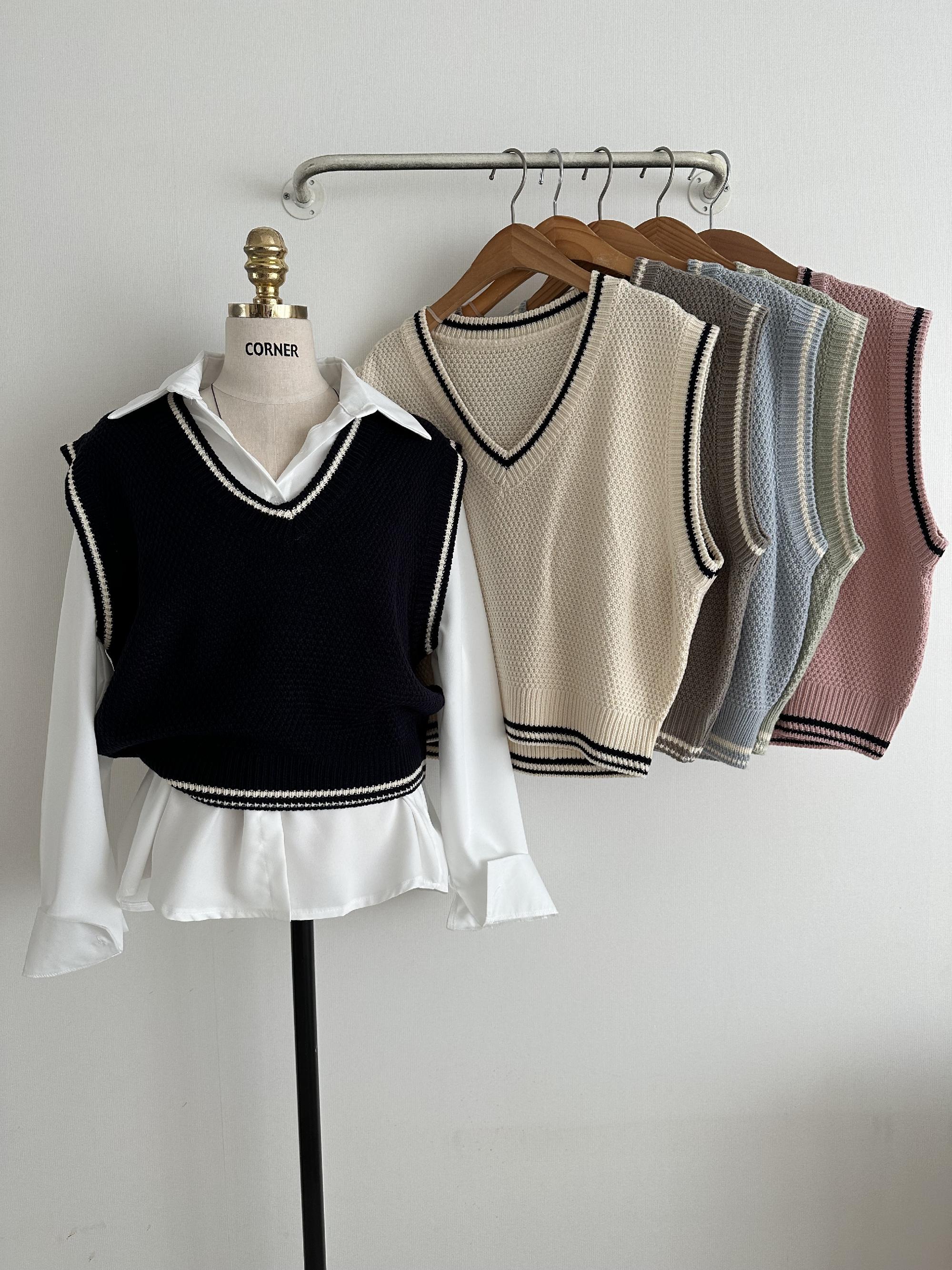 무료배송 (6컬러) 와플 볼볼즈 브이넥 크롭 니트조끼