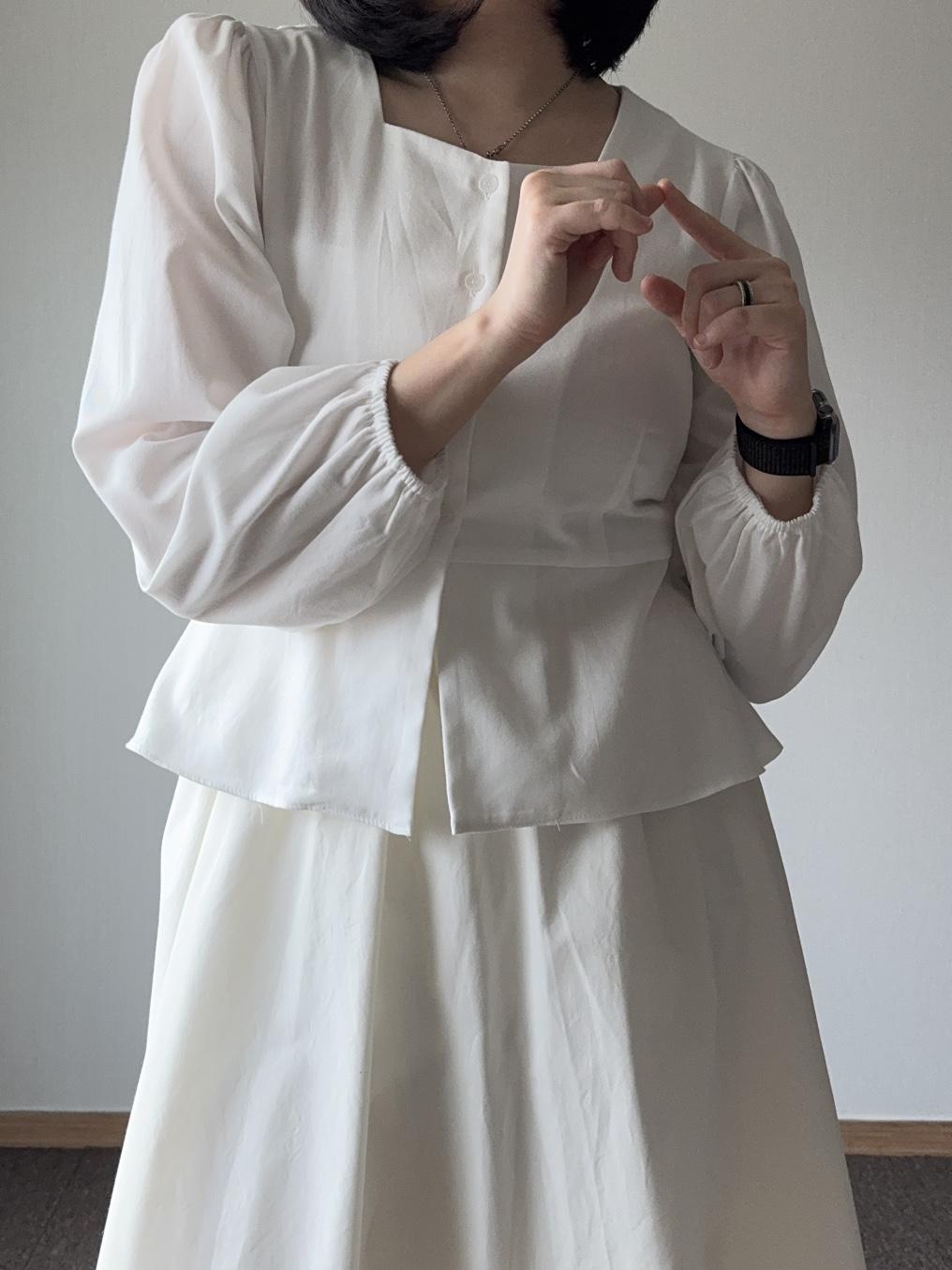 케어링 블라우스 셔츠 셔링 허리끈