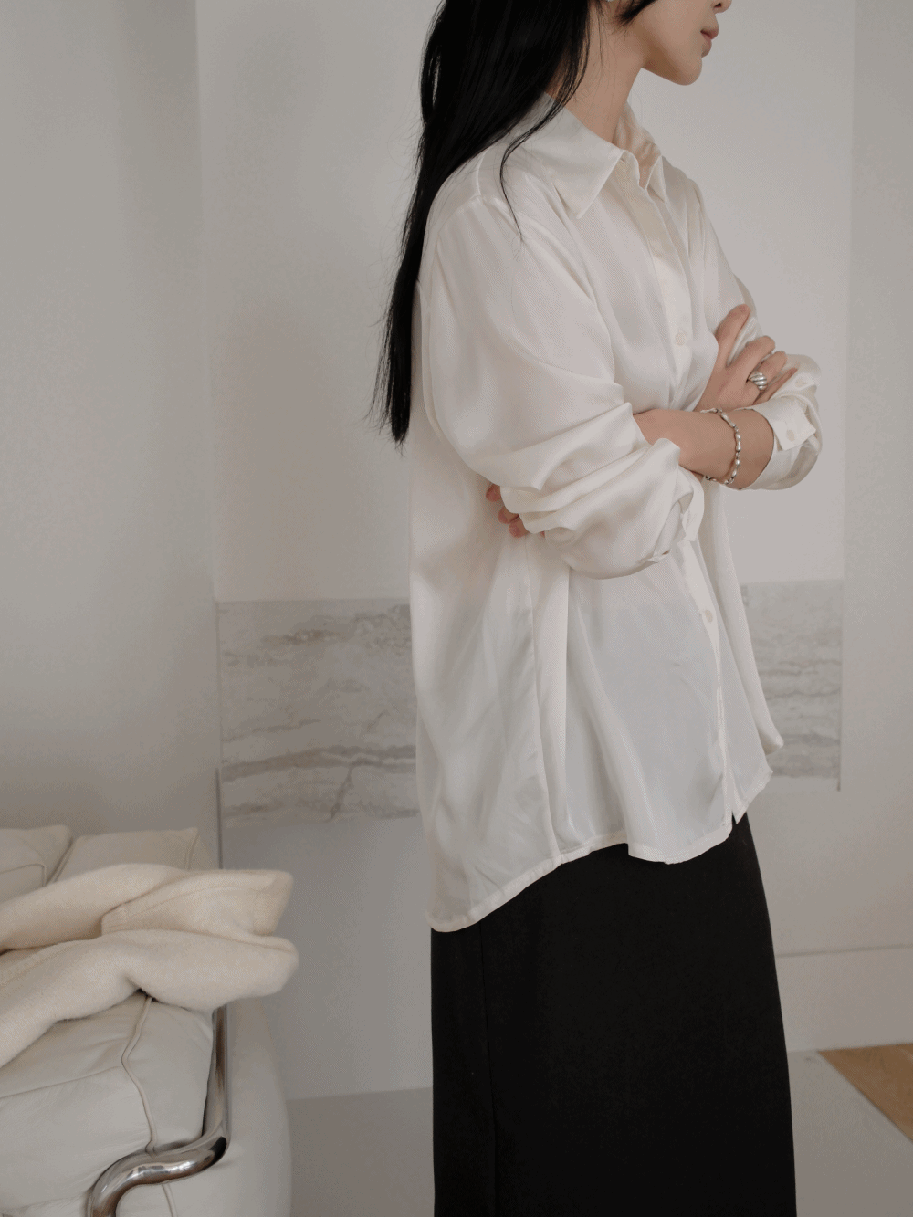 실베린 실크 새틴 레이어드 셔츠 블라우스_Silverin shirt