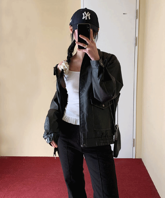 [얇은누빔/ykk 지퍼🤐] 빈티지 레더 오버핏 자켓 (2color)