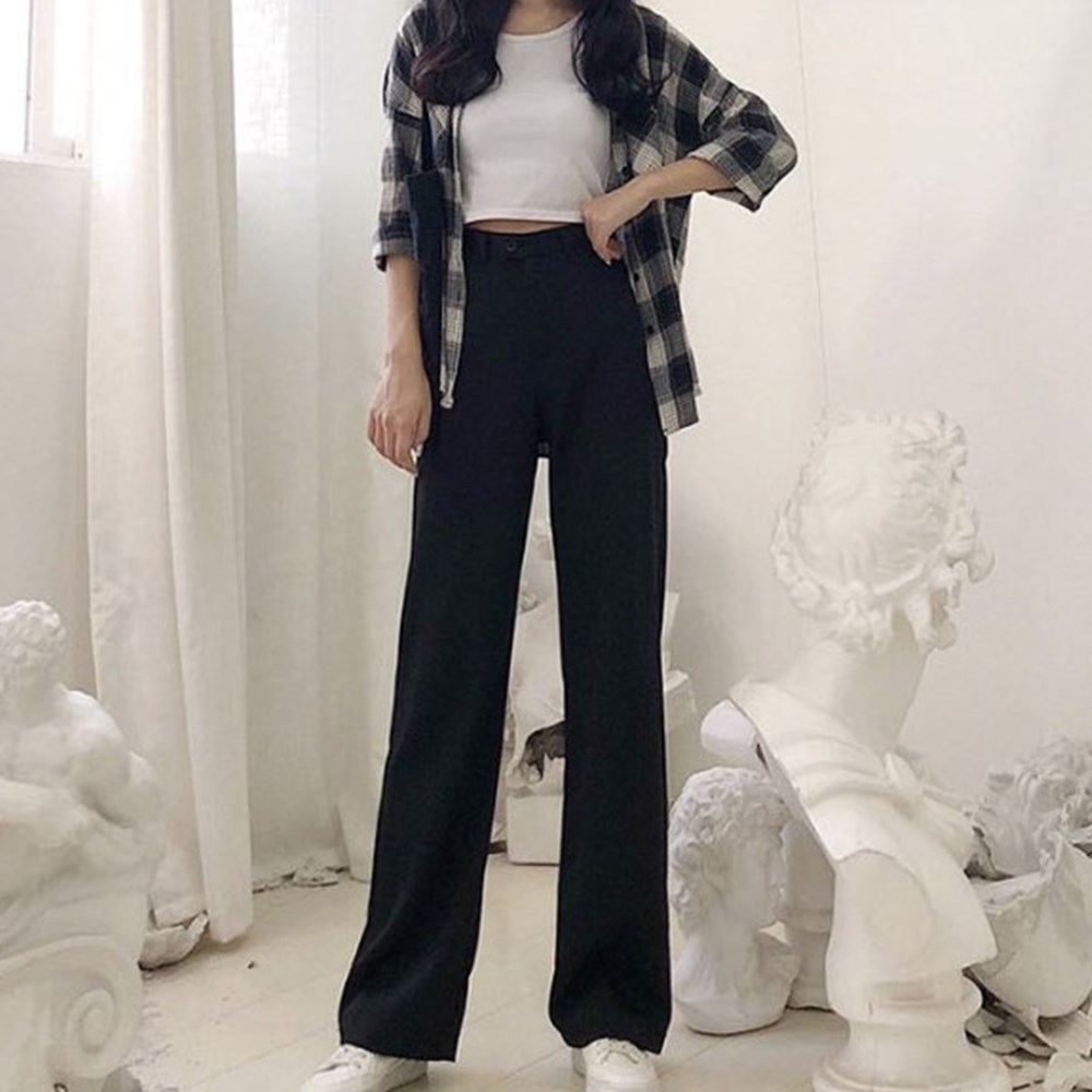 일자통바지 봄가을 검정색 알바 면접 여성슬랙스