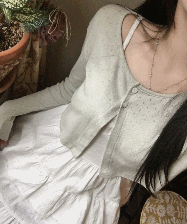 [여리핏/봄신상] 투버튼 모리걸 플라워 펀칭 가디건
