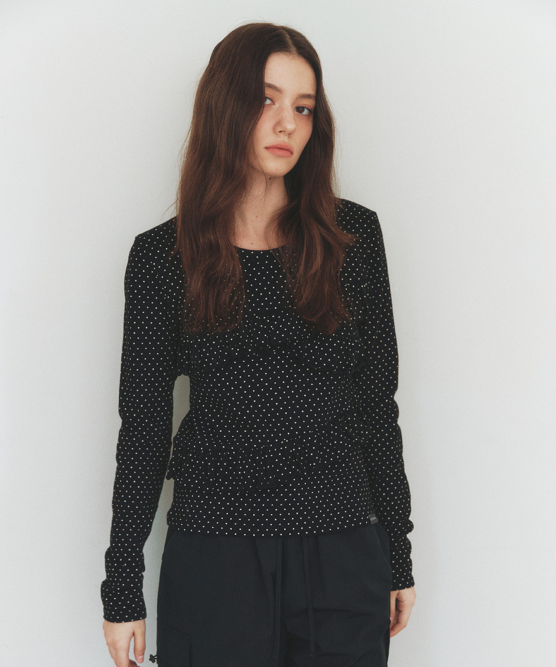 Frill Lace Dot Long Sleeve T-Shirt - black
