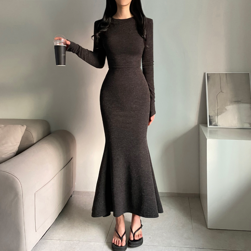 세트가격) 유리프 크롭 긴팔 니트 & 머메이드 밴딩 롱 스커트 투피스 세트 ( 하이웨스트 패드 데이트룩 데일리룩 하이웨스트 set )
