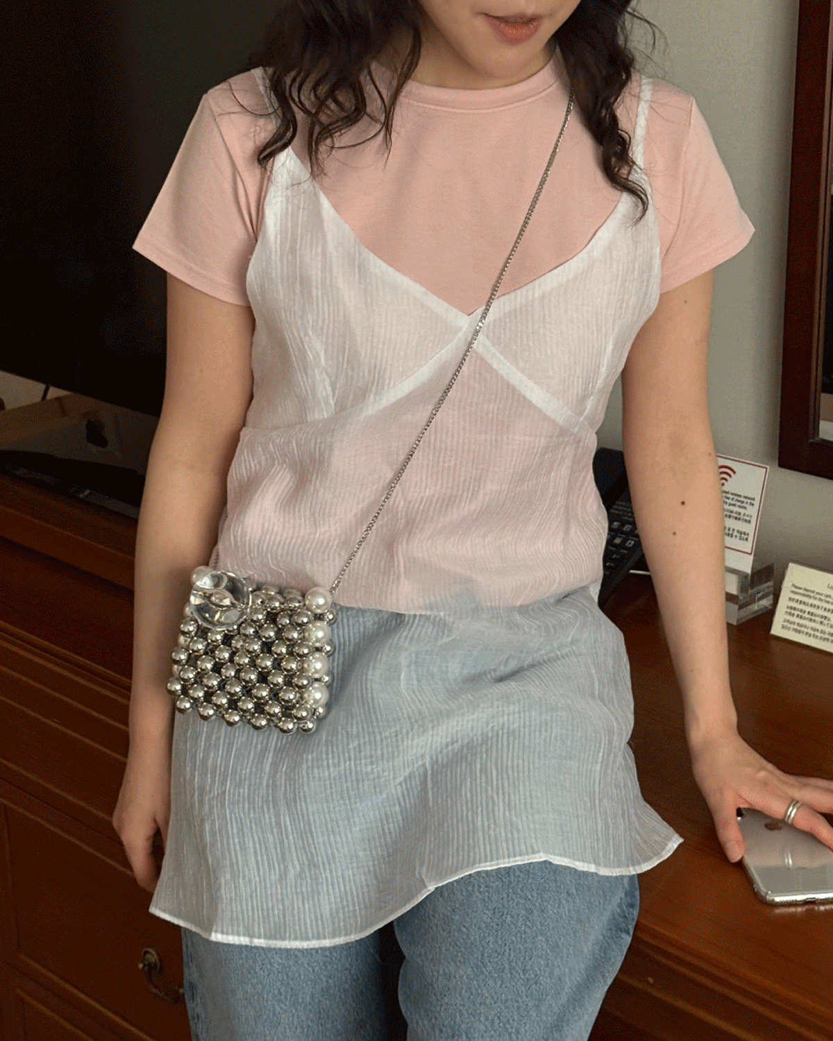 [봄신상] 시스루 레이어드 뷔스티에 [ 레이어드원피스 뷔스티에원피스 봄신상 봄패션 데이트룩 시스루 슬리브리스 미니원피스 짧은원피스 뷔스티에블라우스 ]