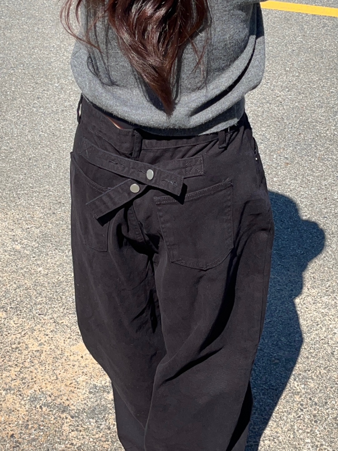 [남녀공용] 비죠 크로스 백버튼 와이드 팬츠 4C
