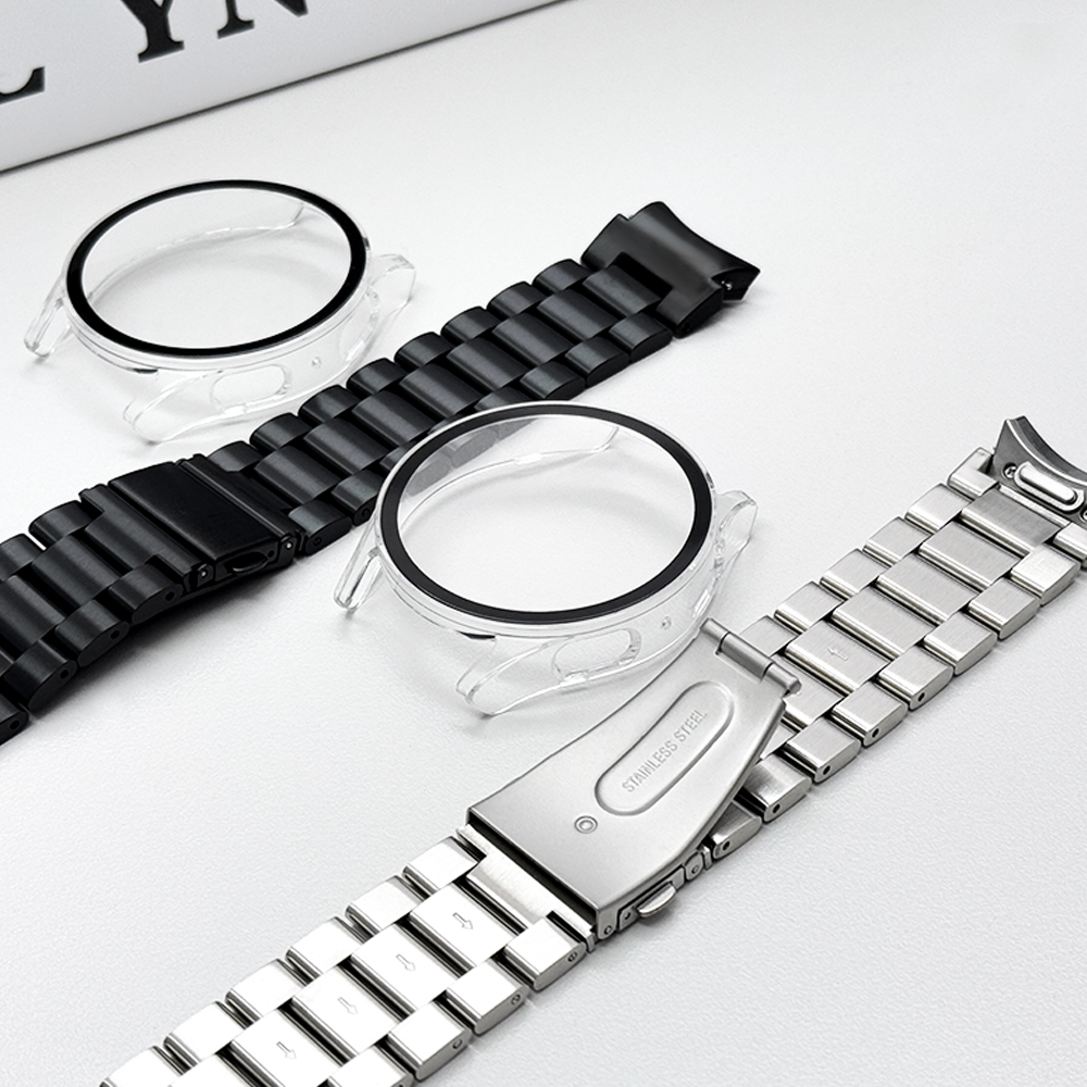 [당일출고] 갤럭시워치7 44mm 40mm 호환 버튼 메탈체인 스트랩 풀커버 강화유리 케이스 콤비 세트 시계줄 밴드 커버
