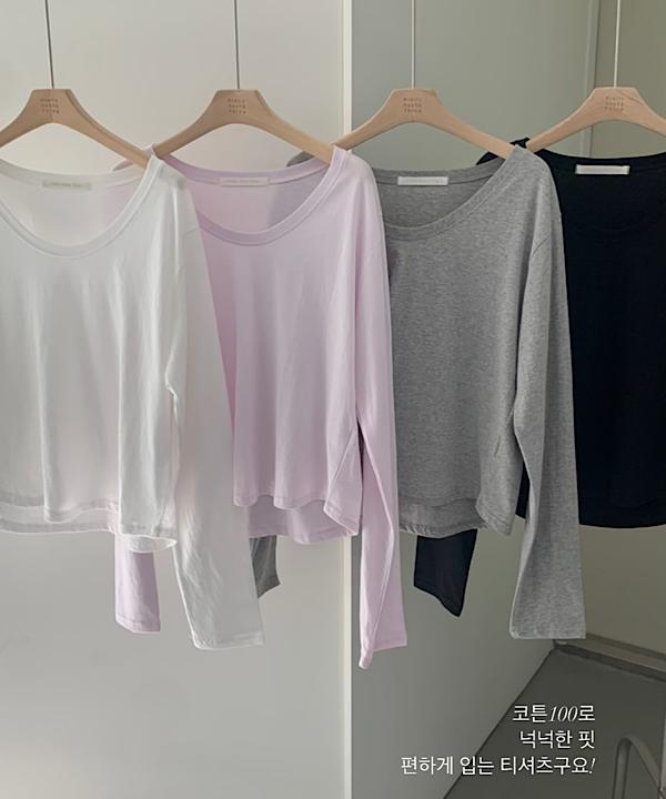 (아,핑당일) 프리티영띵 로망스 유넥 티 pyt 프영띵 4col 텐셀 이너 티셔츠 긴팔 자개 포인트 여리핏 봄 파스텔 스판