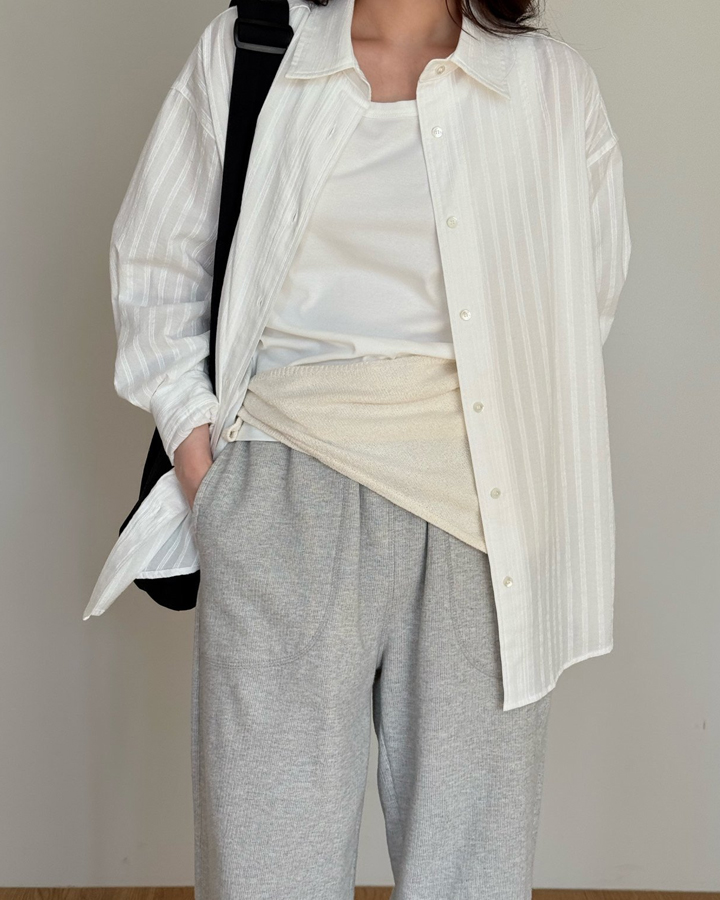 에이미그레이스 핑거 스트라이프 셔츠 여성 베이직룩 루즈핏 면 남방(86486)
