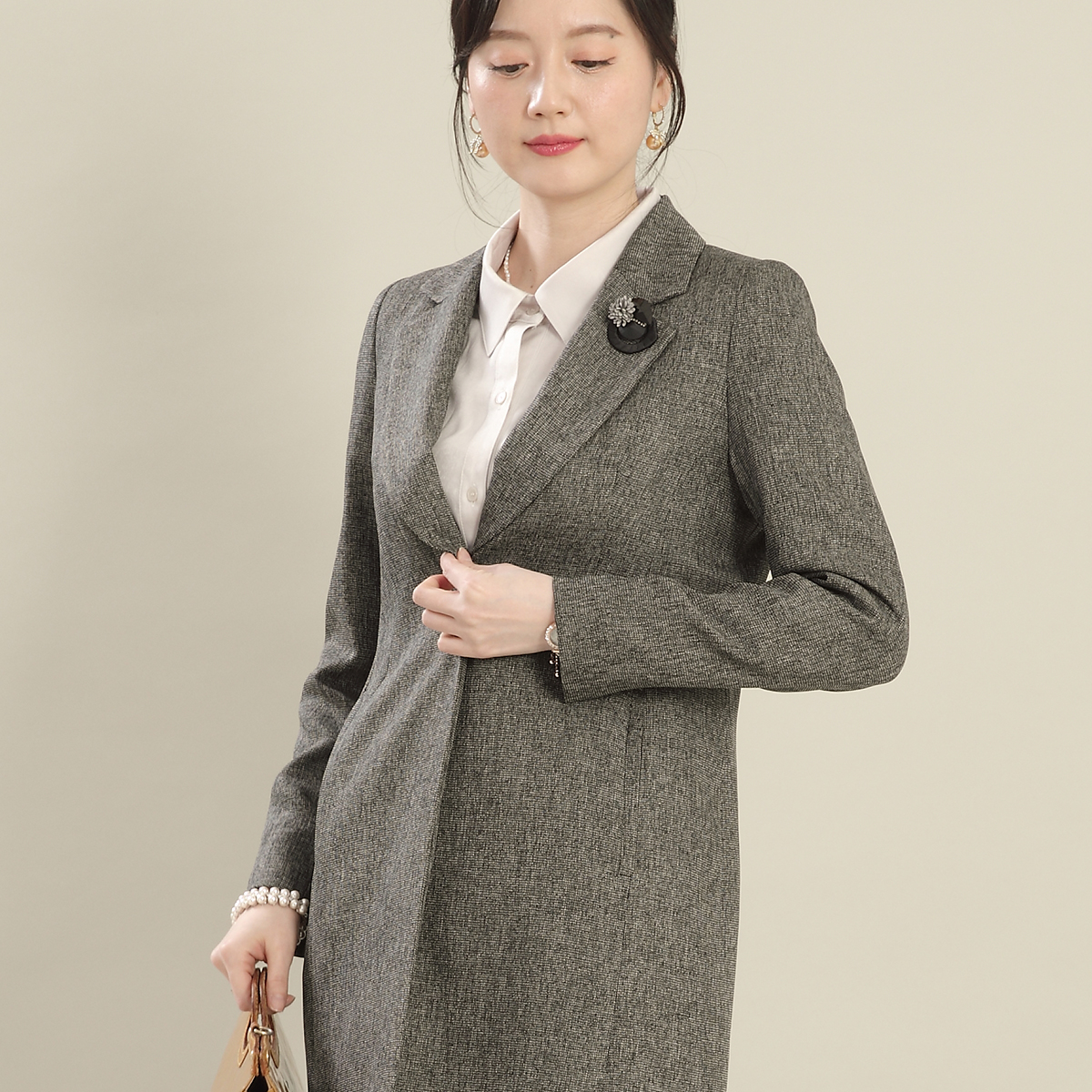 테일러 카라 브로치 싱글 원 버튼 여성 봄 가을 정장 하프 마이 자켓 J04518