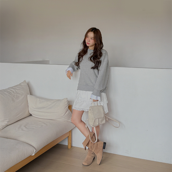 [빅사이즈]이블렛 브아델 커프스 배색 라운드 맨투맨 제이스타일