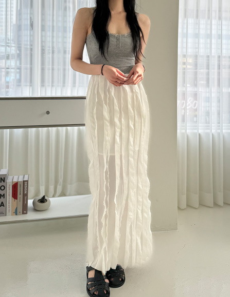 유로 스커트 (롱 트임 프릴 밴딩 머메이드 스판 시스루 신상 봄 레이어드) - 화이트, 블랙