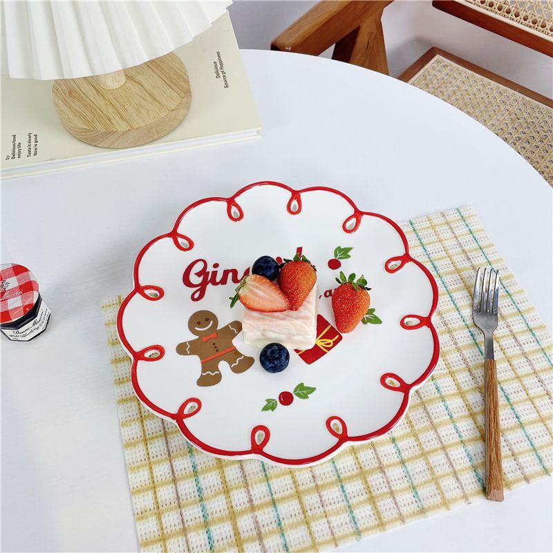 꽃모양 레터링 크리스마스 접시 그릇 식기