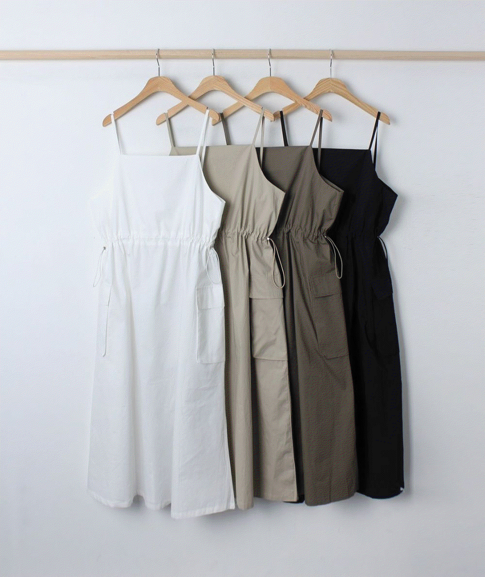 초코 허리 스트링 카고 나시 롱원피스 4color