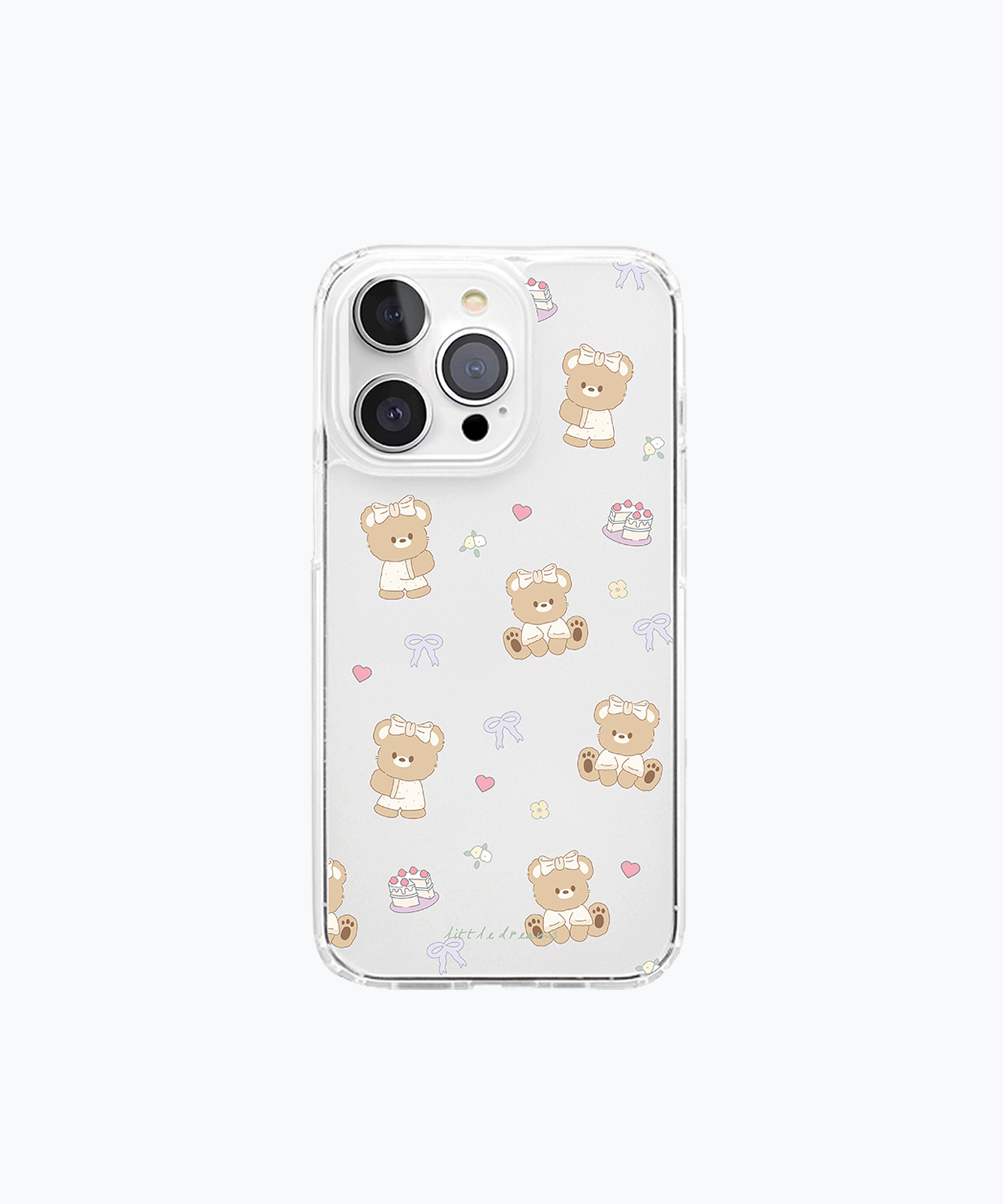 맥세이프 귀여운 곰돌이 노랑 리본 꽃 아이폰케이스 갤럭시 클리어 투명 젤하드 폰케이스