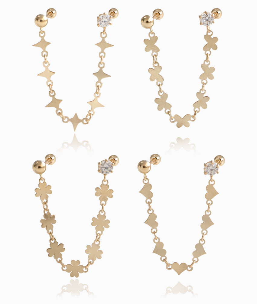 14K 아이콘 체인 투핀 골드볼 피어싱 바벨