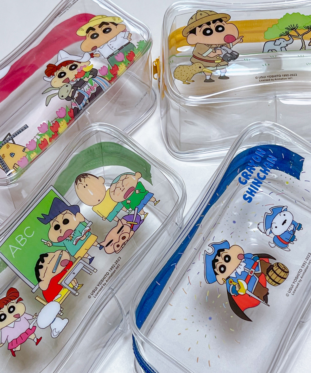 짱구 투명 파우치 필통 굿즈 피규어 보관 사각 클리어 다용도 귀여운 캐릭터 소품 화장품 세면 도구 PVC 방수 가방 비치백 백인백 이너백 여행용 AA0281