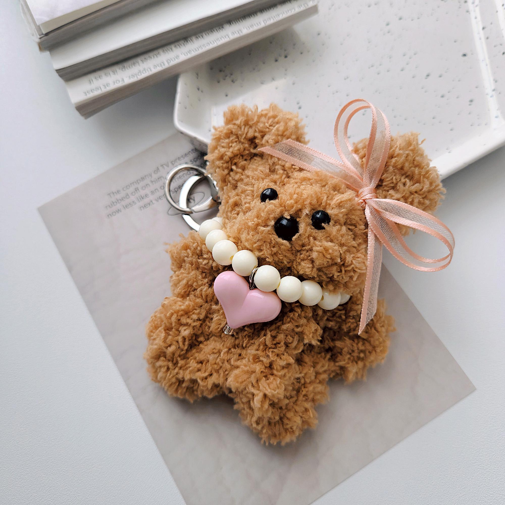 로히니 핸드메이드 폭닥 부들 핑크 하트 브라운 모루 인형 키링 키홀더 가방고리 백참