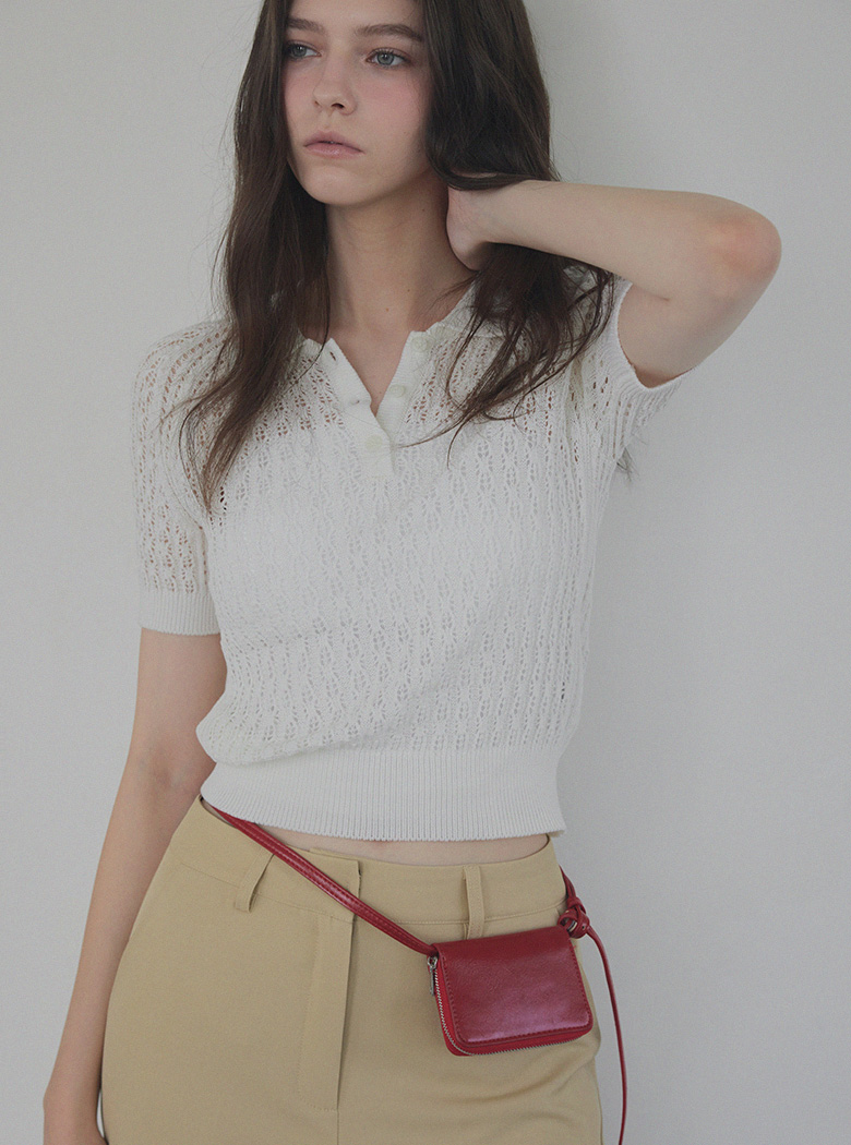 [온라인단독][이정'pick] 리사엘 펀칭 카라 반팔 니트
