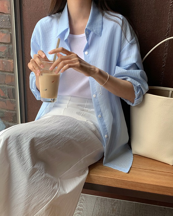 펀시 스트라이프 오버핏 셔츠