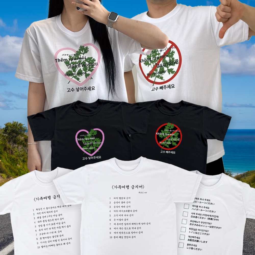 일본어 일본 여행 고수빼주세요 가족여행 금지어 티셔츠 반팔 [5종 고수 주문 베트남 태국 킹받는 웃긴 병맛 재밌는 우정 단체]