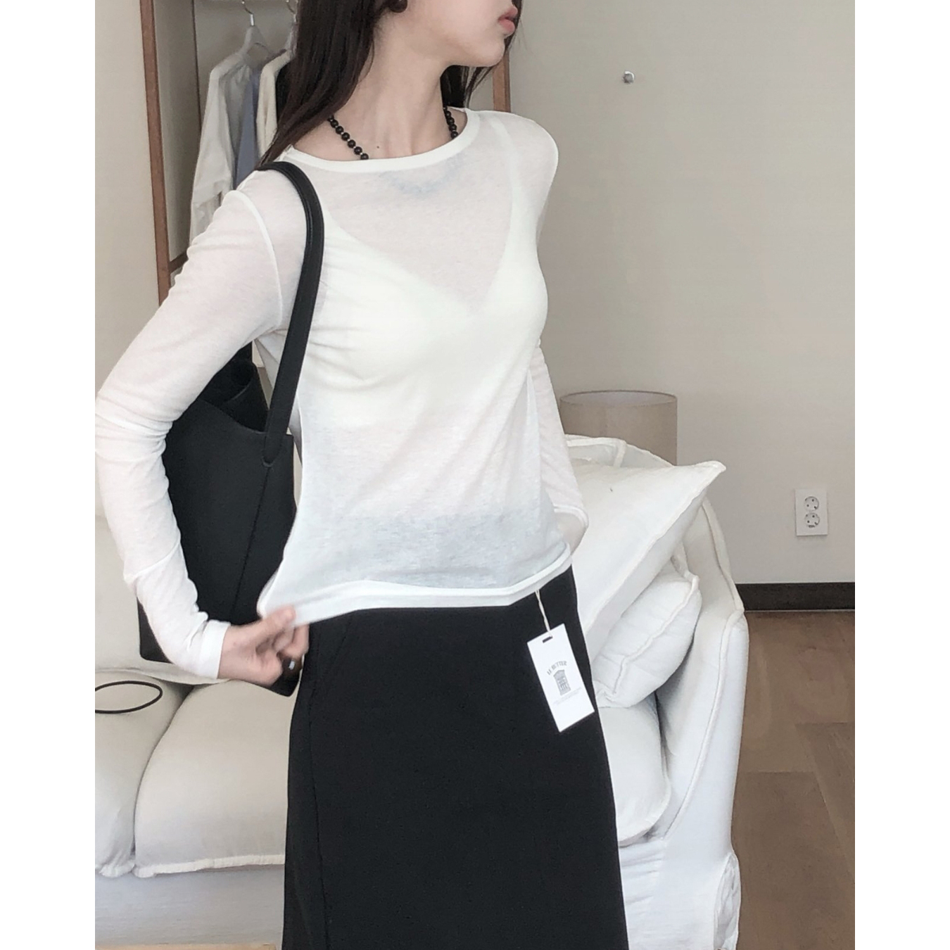 라삐 부드러운 텐셀 긴팔 티 슬림핏 레이어드 티셔츠 날씬핏