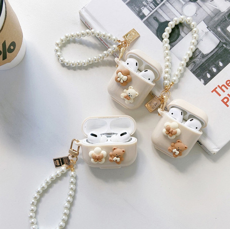 곰돌이 리본 에어팟 케이스 1세대 2세대 3세대 4세대 애플 프로 프로2 갤럭시 버즈 Pro 2 플러스 라이브 호환 무선 이어폰 블루투스 파우치 가방 키링 열쇠고리 키홀더 아이팟