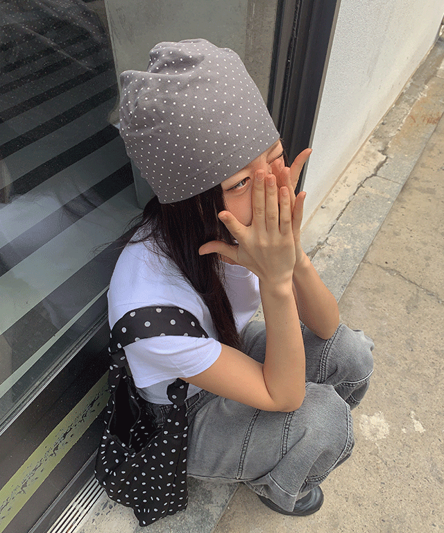 미니 도트 숏비니 2color / 가을 봄 휴양지 빈티지 beanie 면 코튼 땡땡이 패턴 썸머 y2k 짧은 힙합 그레이 차콜 회색 검정 블랙