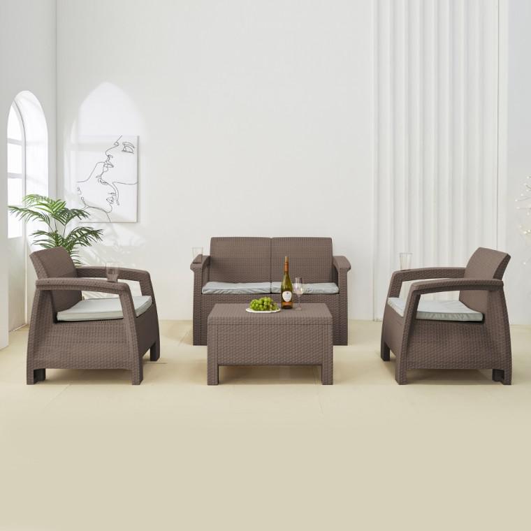 블랑코 4인 라탄 소파세트 야외 라운지 카페 테라스 정원 소파테이블