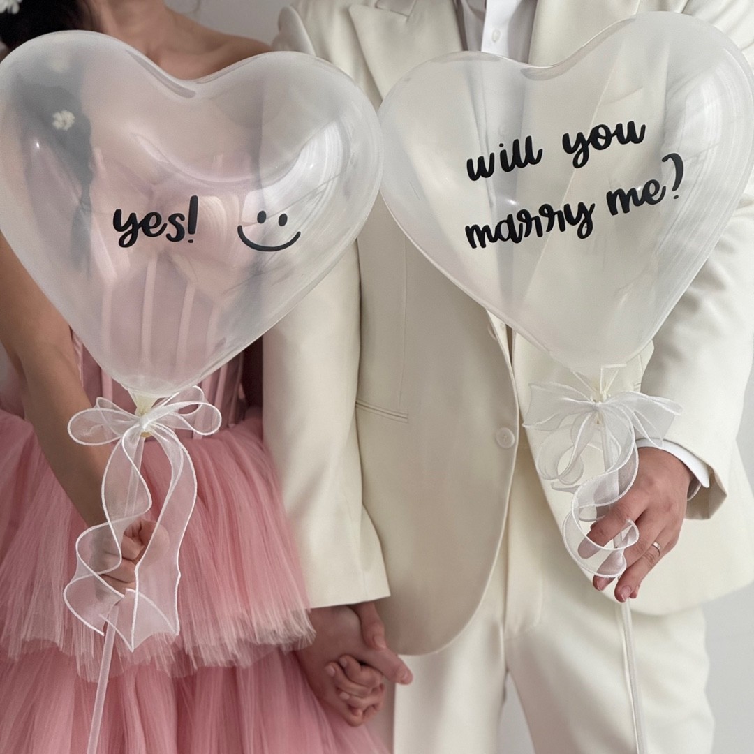 웨딩촬영 프로포즈 윌유매리미 클리어 하트풍선 막대+리본 set