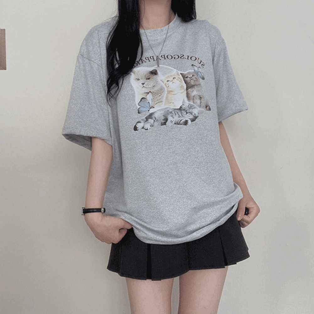 [여름핫템!/박시핏] 야옹스 프린팅 오버핏 반팔티셔츠 신상