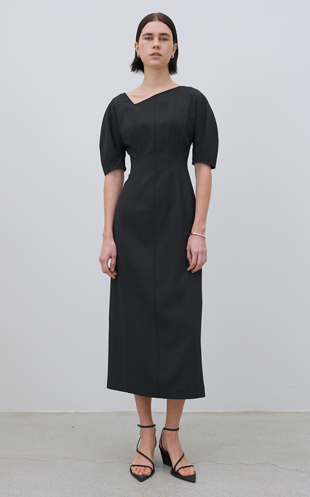 [콤스튜디오] CO UNBALANCED CUT OUT PUFF DRESS_BLACK