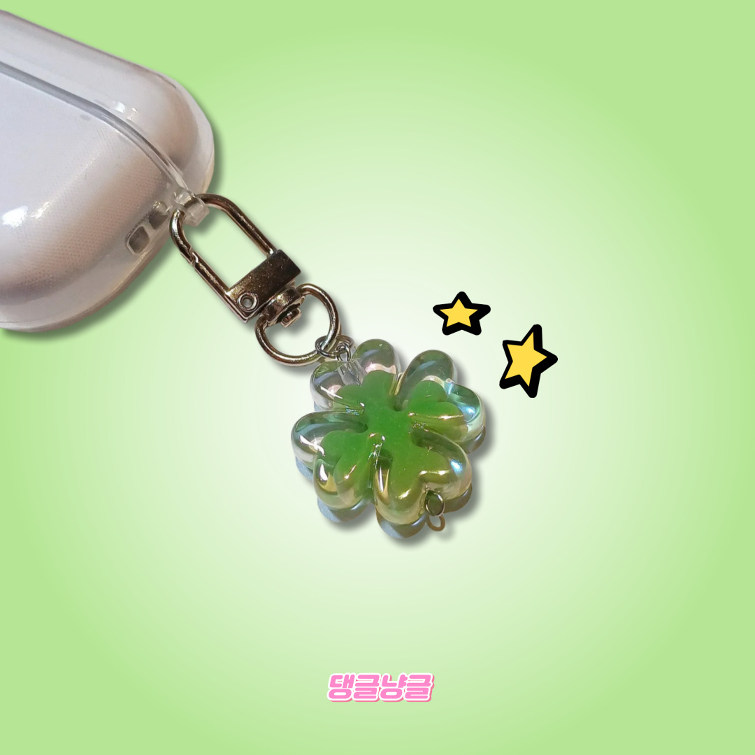 [자체제작❥only댕글냥글] 유니크 영롱 투명 네잎클로버 행운 키링 🍀 우정키링 핸드폰 에어팟키링