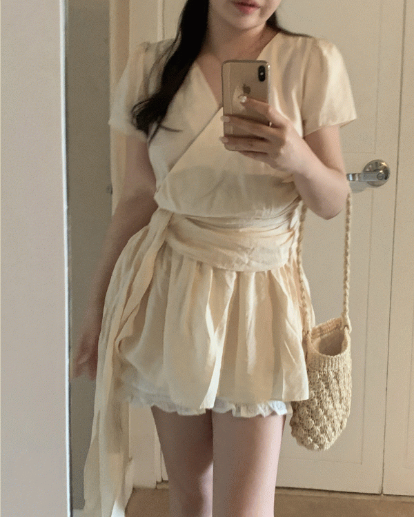 [무료배송]롤링 브이넥 시어 프릴 랩 원피스 2color