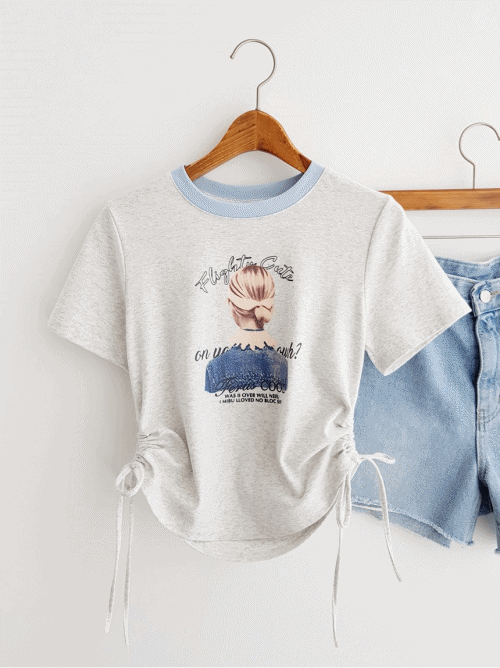 ⭐️핏보장!여리핏⭐️ 여리여리 소녀 뒷모습 스트링 슬림핏 크롭티셔츠 크롭반팔티 잘록티셔츠 배색티셔츠 여름티셔츠 여름휴가 바캉스룩 데이트룩 놀이동산코디 동남아여행룩 썸머티