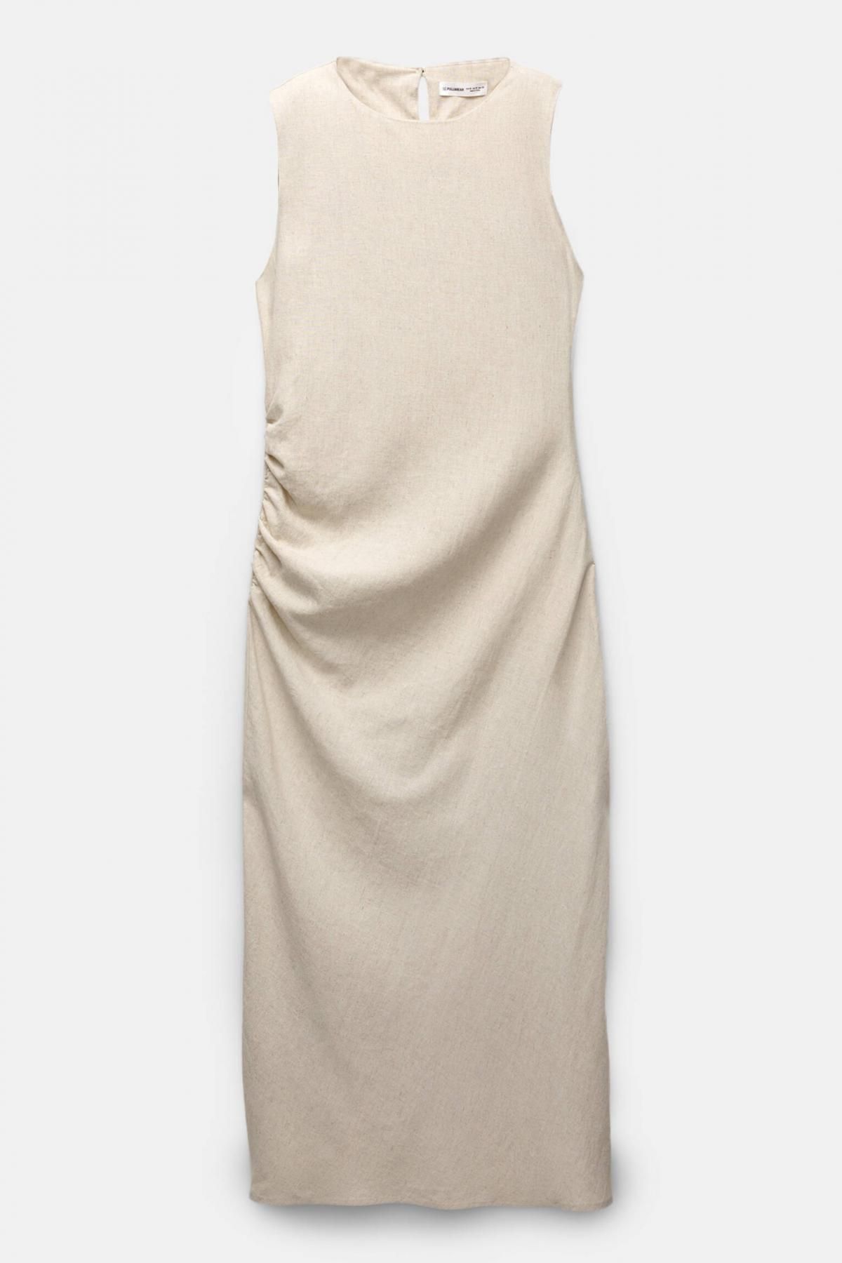 풀앤베어 미니멀 셔링 미디 원피스 민소매 라운드넥 7394/200 BEIGE