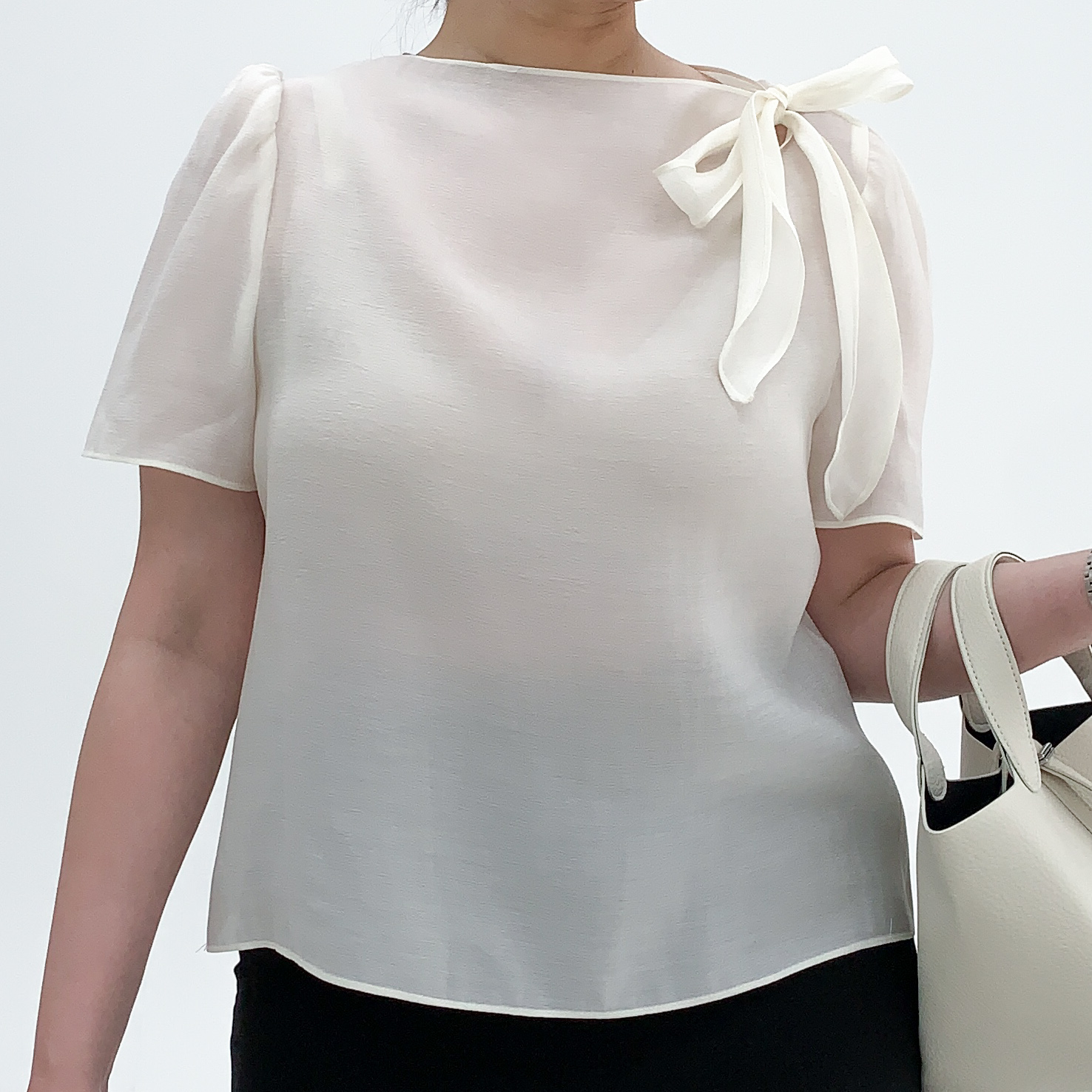 빅사이즈 리본 여름 반팔블라우스 통통녀 하객룩 여름출근룩 오간자블라우스 여름오피스룩