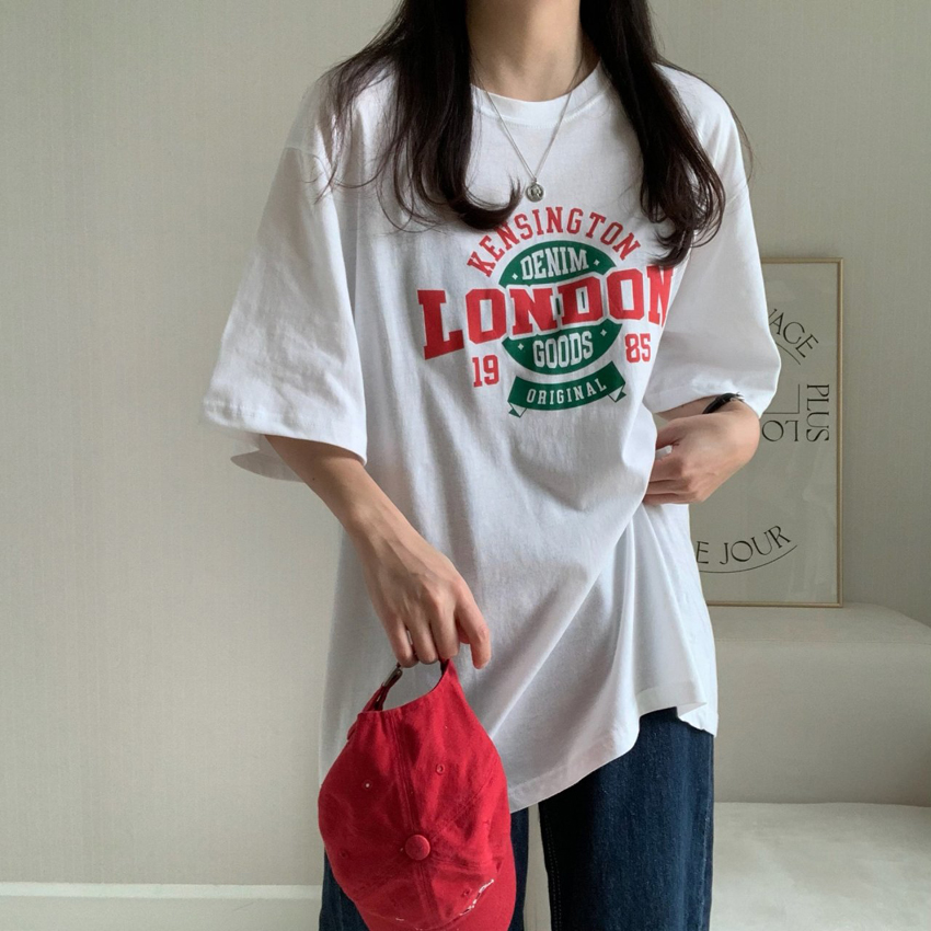 런던 굿즈 박스티 캐주얼 레터링 반팔 루즈핏 면 티셔츠 여름
