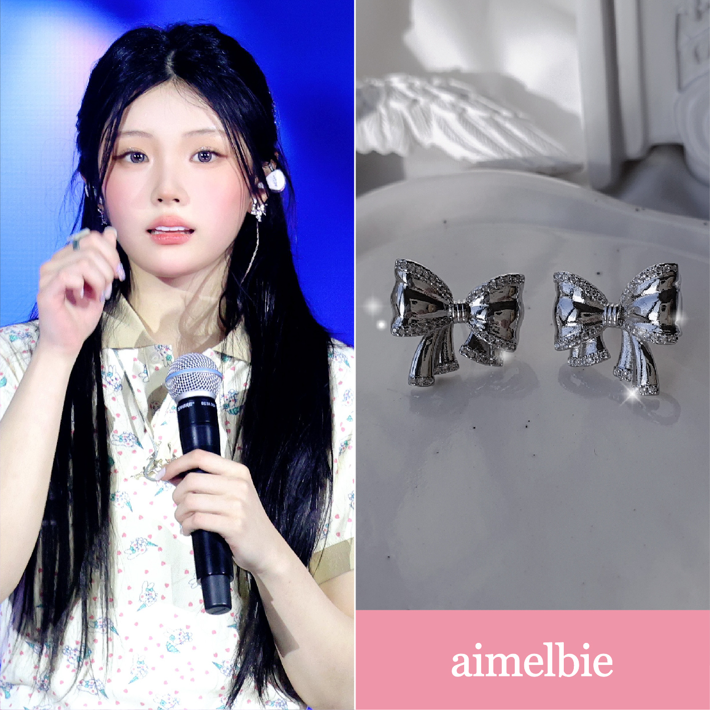 [아일릿 원희 착용] Puffy Ribbon 리본 큐빅 귀걸이 - 실버 컬러